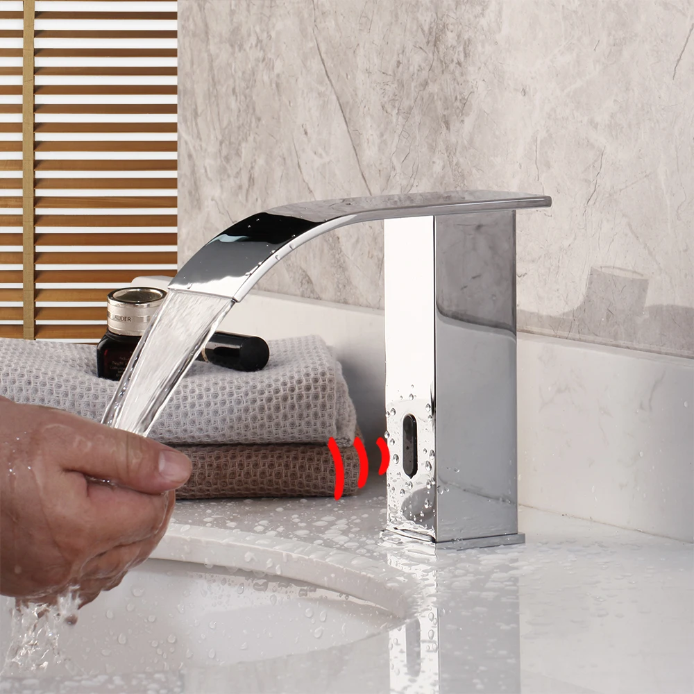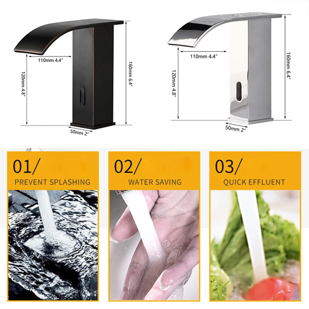 Bestseller JIENI Black & Chrome Bad Wasserhahn Deck Montiert Automatische Sensor Wasser Mischer Kran Freies-Touch Sensor Waschbecken Wasserhahn wasserhahn