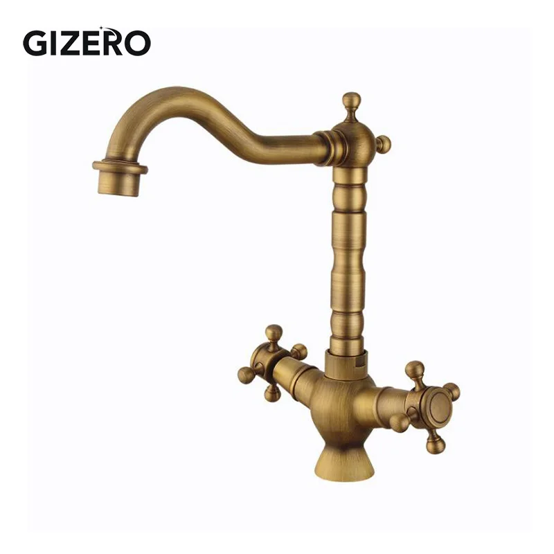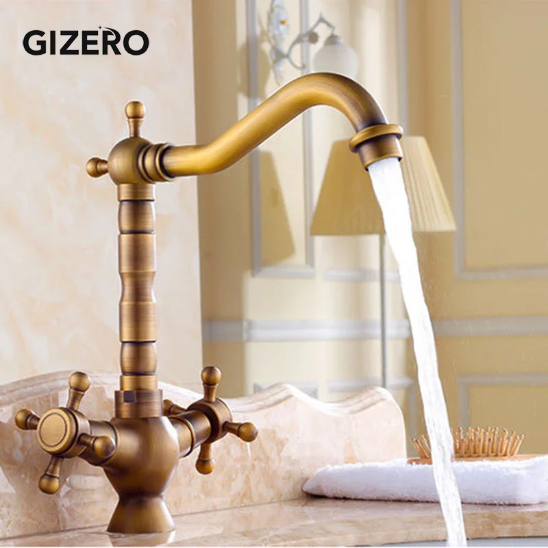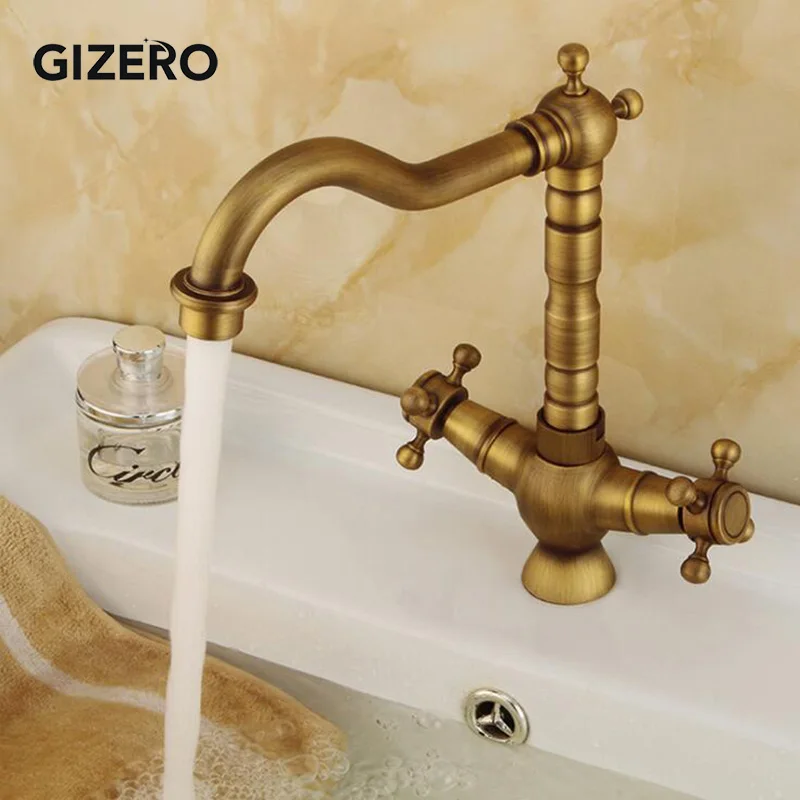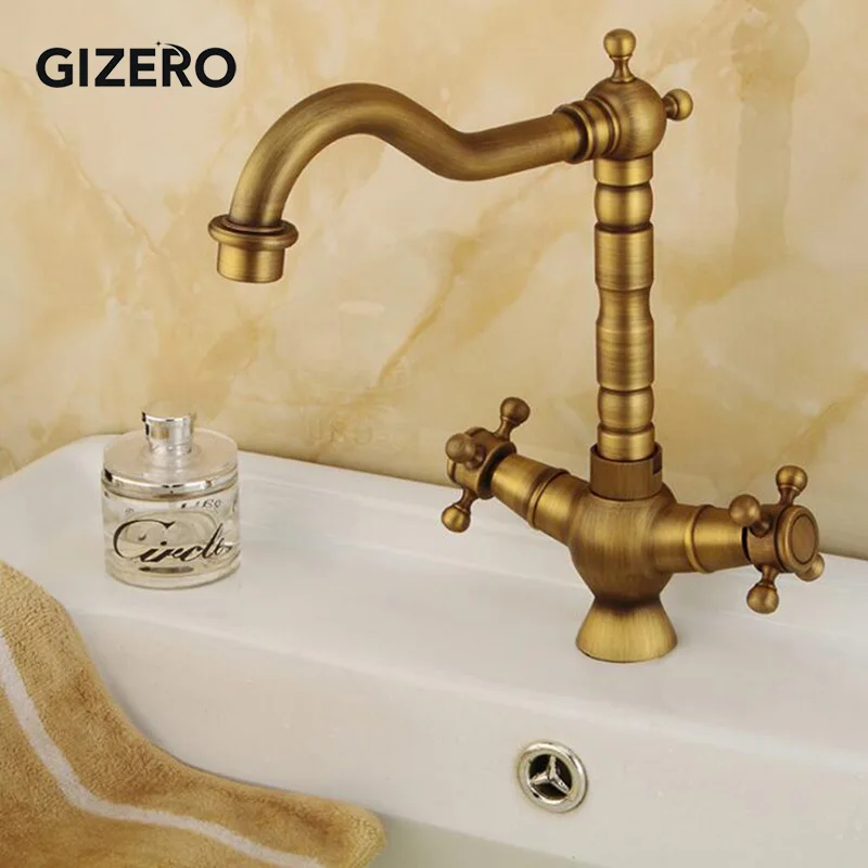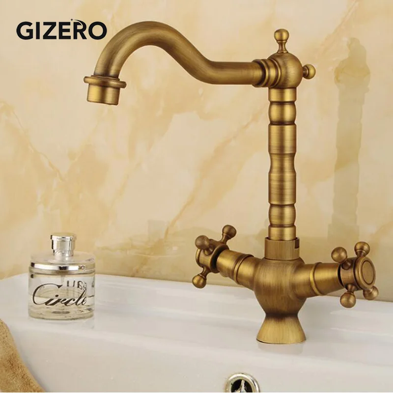 Antike Dual Griff Badezimmer Messing Wasserhahn Becken Mixer Heißer Und Kalten Wasserhahn Swivel Deck Montiert Waschbecken Eitelkeit Wasserhahn Torneira ZR111.