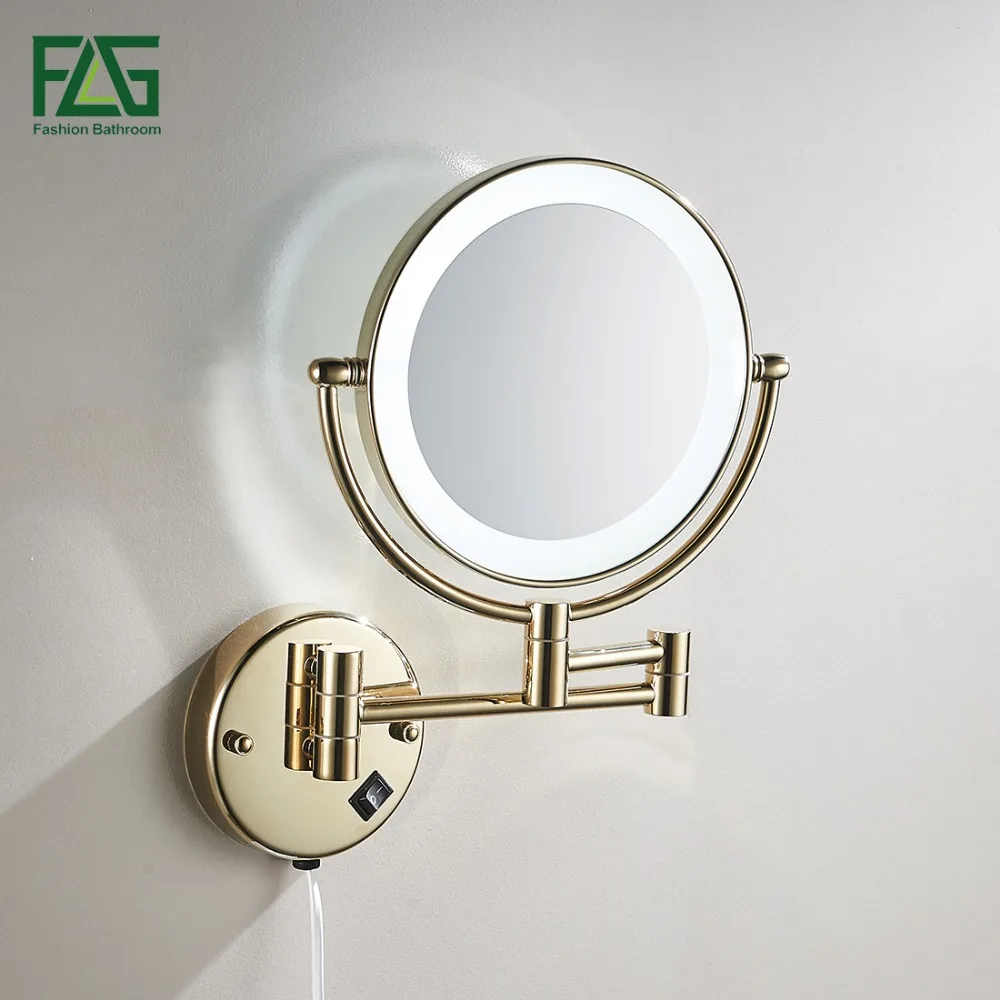 Bonus Goldene Messing LED Licht Make-Up Spiegel 8 "Runde Dual Seiten 3X/1X Spiegel Bad Kosmetik Spiegel Wand Montieren vergrößerungs Spiegel