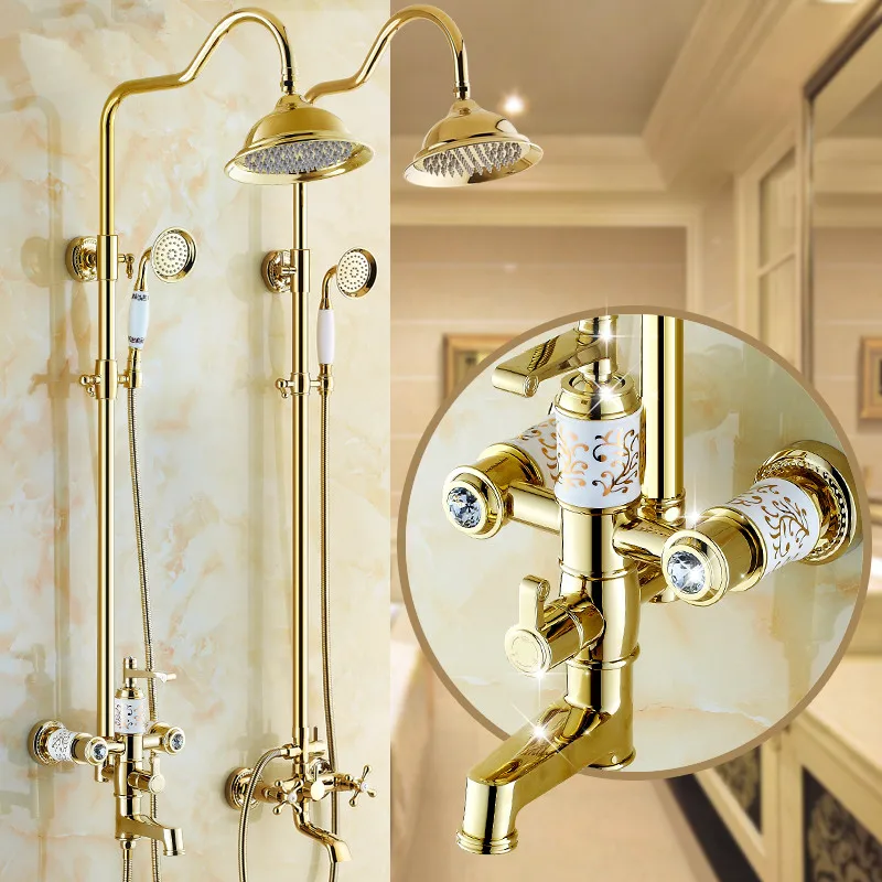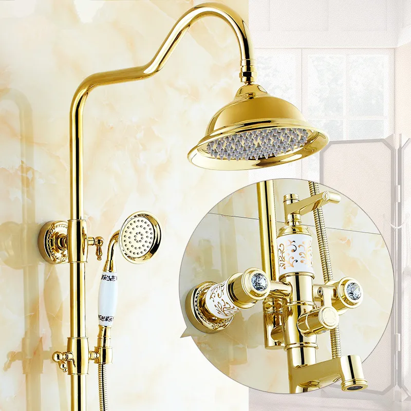 Gold polnische dusche set Soild messing wasserhahn Europäischen Dusche gesetzt Heiße Und Kalte Dusche wasserhahn 8 zoll niederschläge.