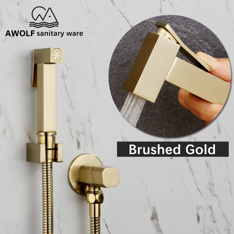 Neu Hand Gehalten Bidet Sprayer Gebürstet Gold Messing Douche Kit Wc Shattaf Sprayer Platz Kupfer Ventil Set Dusche Kopf Wasserhahn AP2112