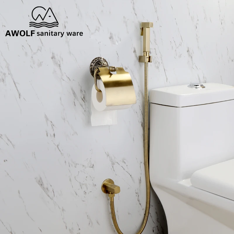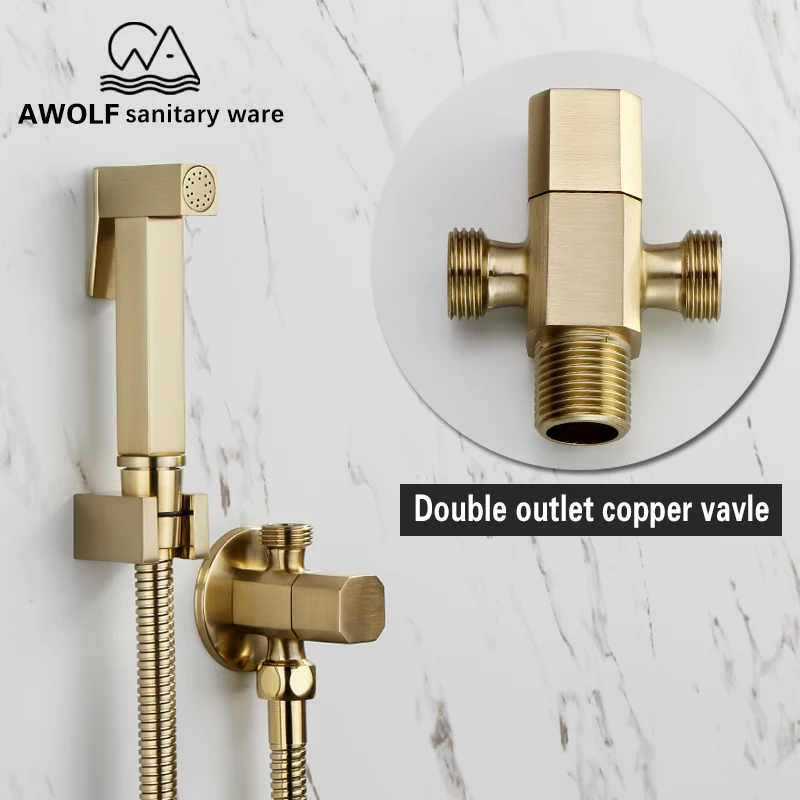 Hand Gehalten Bidet Sprayer Gebürstet Gold Messing Douche Kit Wc Shattaf Sprayer Platz Kupfer Ventil Set Dusche Kopf Wasserhahn AP2112.