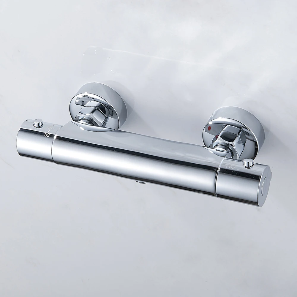 Bad Dusche Wasserhahn Thermostat Wasserhahn Wand Montiert Mixer Ventil Tap Temperatur Control Regen Dusche Chrom Bad Twin Outlet.