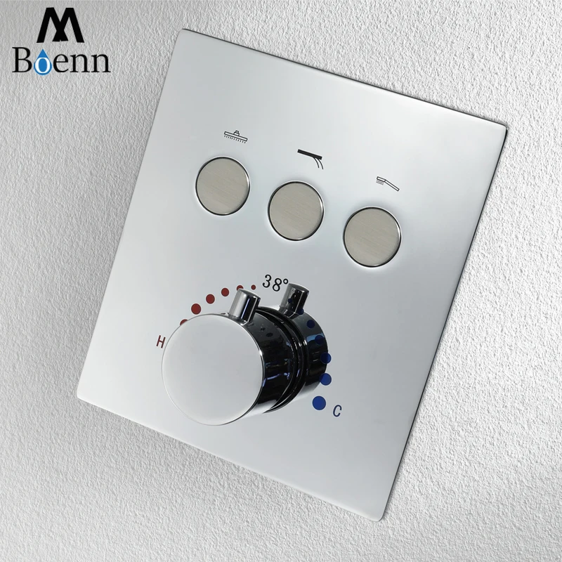 Rabatt M Boenn Bad Wasserhahn Taste Schalter Messing Verdeckte Mischer Gebaut-in Thermostat Mischer Dusche Wasserhahn Ventil 2/3 Funktion Schwarz chrom