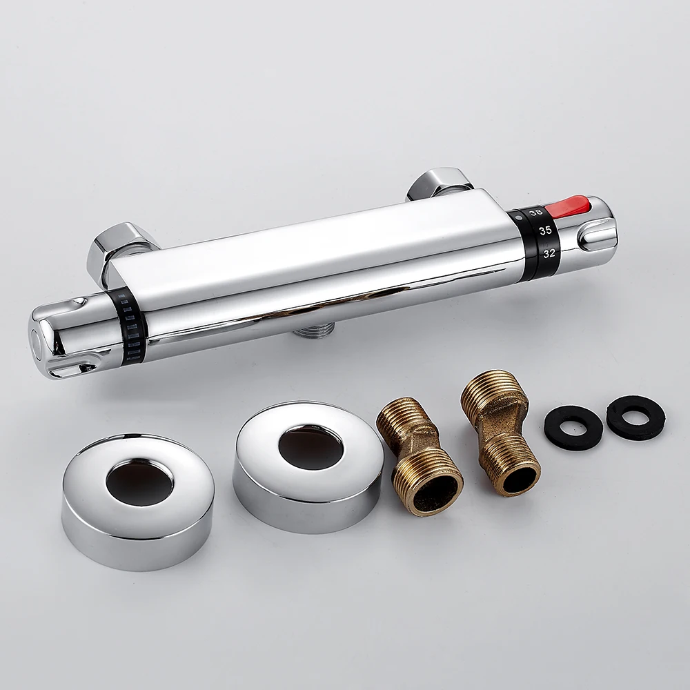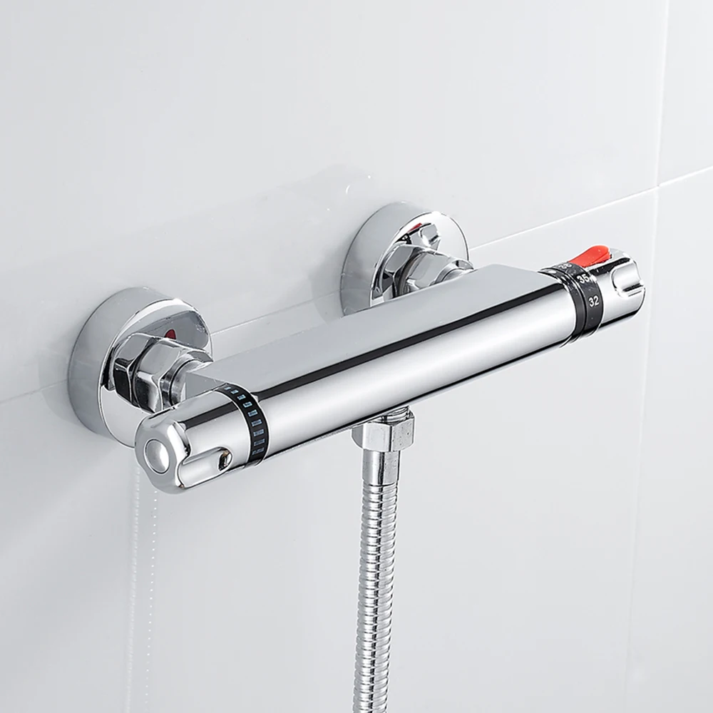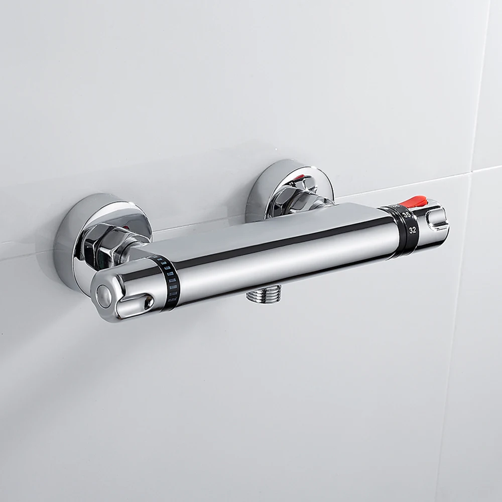 Rabatt Thermostat Dusche Wasserhahn Mixer Wert Dual Griff Bad Dusche Wasserhahn Wand Montiert Mixer Ventil Tap Temperatur Kontrolle Dusche