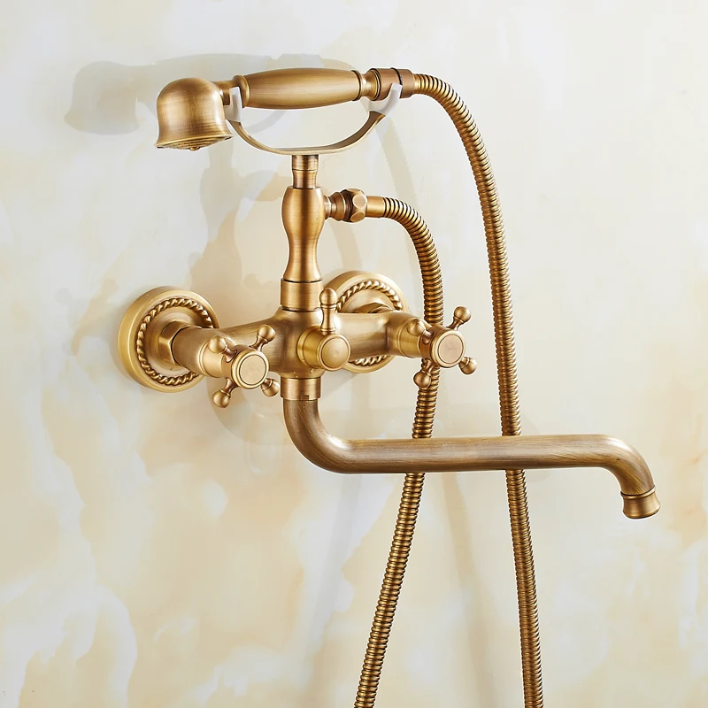 Spitzenreiter Antique Brushed Messing Bad Armaturen Wand Montiert Bad Becken Mischbatterie Kran Mit Hand Dusche Kopf Bad & Dusche Wasserhahn